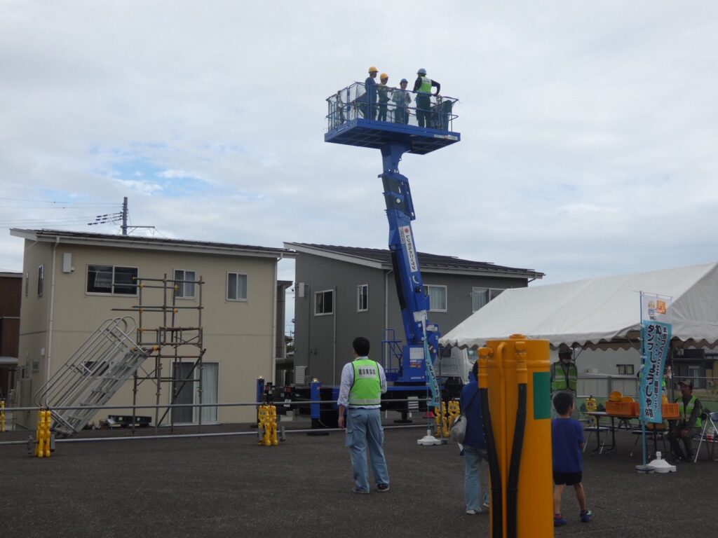 高所作業車に乗り、糸魚川の景色を眺めたりと、