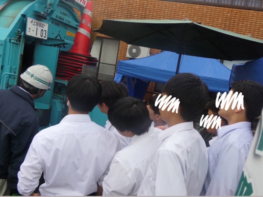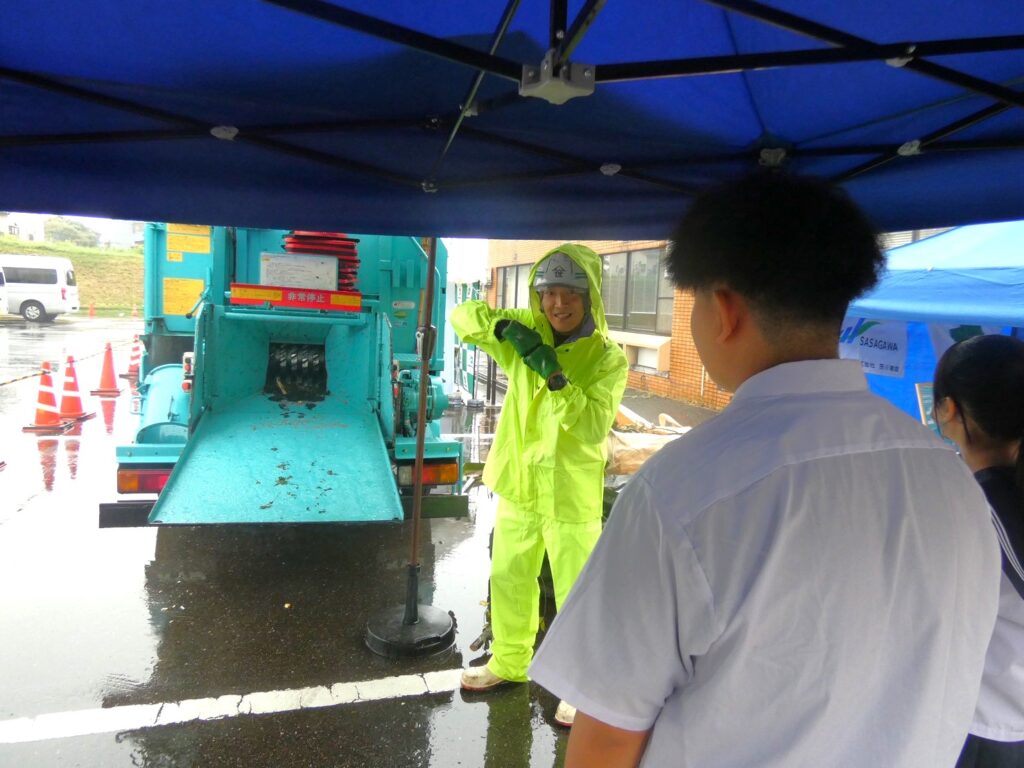 ブースに来て頂いた生徒の皆さんに、実際に粉砕処理車に木を入れて、