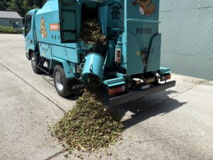 粉砕処理車にてチップ化し、代替肥料として多くの